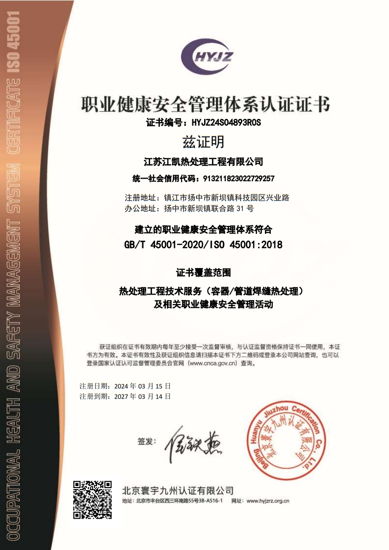 職業(yè)健康安全管理體系證書